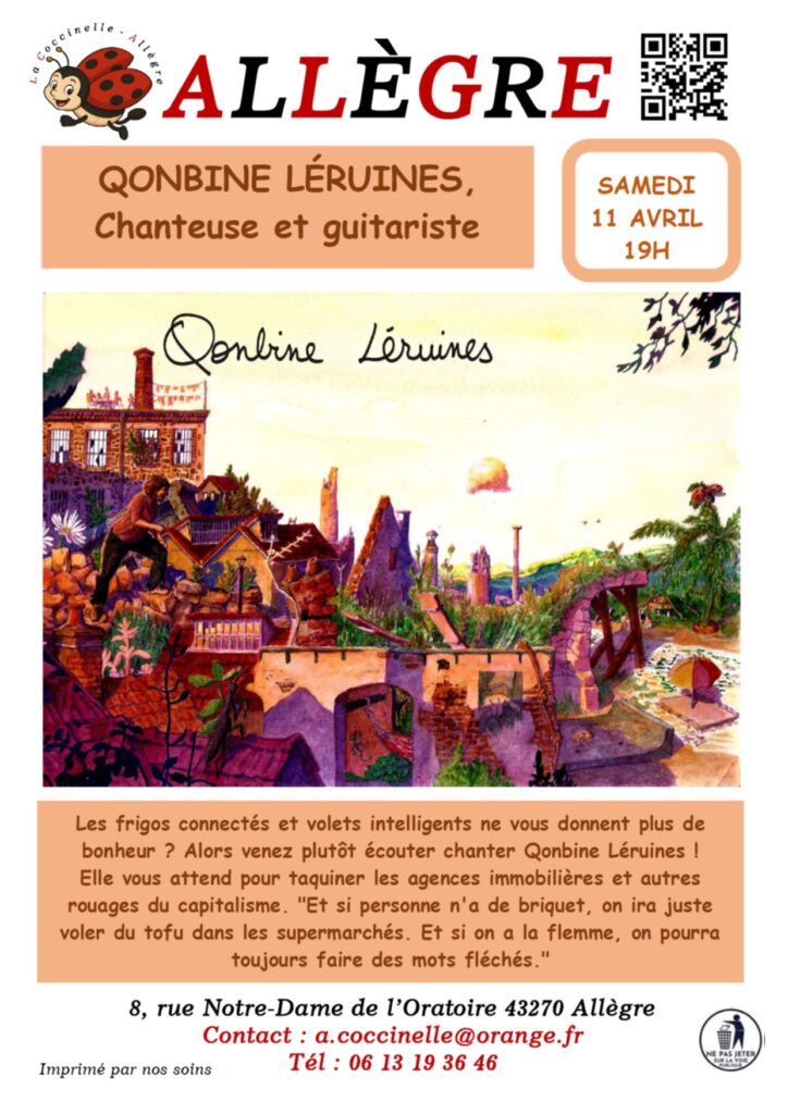 Concert à la Coccinelle : Qonbine Léruines, chanteuse et guitariste
